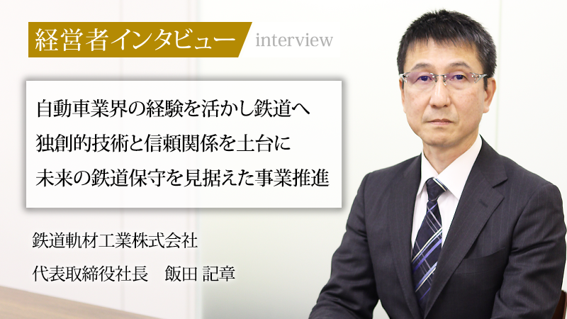 鉄道の安全運行に不可欠な軌道材料の設計・開発を手がけ、日本の社会インフラを根底から支える鉄道軌材工業株式会社。同社は、日本産業規格(JIS)などの基準を満たすだけでなく、コンパクト化や軽量化といった現場の使いやすさや、鉄道事業者様の要望に合わせた製品開発等の独創的な技術力が強みだ。2019年、同社の代表取締役社長に就任したのは、自動車業界で25年の営業経験を持つ飯田記章氏だ。異業種で培った顧客起点の視点をいかに事業に活かし、会社の変革を促してきたのか。そして、業界の未来をどう見据えているのか。その軌跡と展望に迫る。