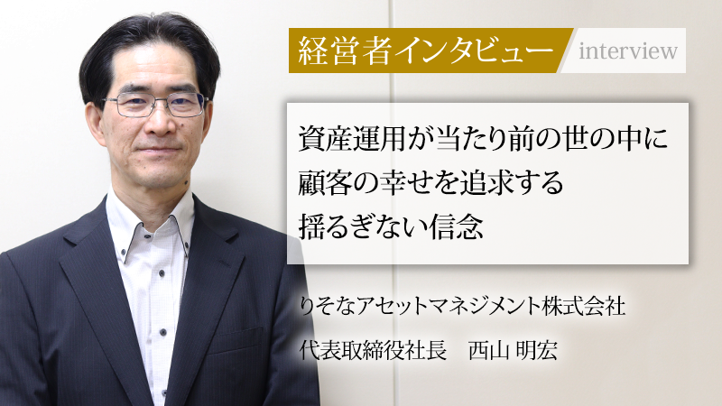 個人の資産形成に対する関心が高まり、国も「資産運用立国」を掲げる中、りそなアセットマネジメント株式会社は、長年培ったプロ向け運用ノウハウを個人や法人のお客さまに提供している。同社は「責任投資」の分野を中心に、経済的リターンと社会的リターンの両立を追求してきた。2023年、三代目社長に再び就任した西山明宏氏に、同社が大切にするお客さま本位の精神と、資産運用が当たり前になる未来への強い想いを聞いた。