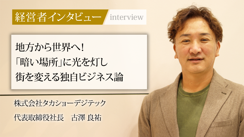 「光の演出で人の心を彩る」を経営理念に掲げ、世界へ挑む株式会社タカショーデジテック。環境エクステリア事業を手がける株式会社タカショーの社内ベンチャーとして発足し、屋外照明やLEDサイン、イルミネーション事業で急成長を遂げている。照明メーカーの枠を超え、「光」の事業を通じてワクワクする「モノづくり」「コトづくり」を提供し続けることで、地方創生にも取り組む同社。代表取締役社長の古澤良祐氏に、起業の経緯から市場創造の戦略、これからの企業に求められるあり方について話を聞いた。
