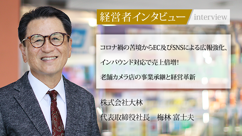 大阪・梅田に店舗を構え、屋号「カメラの大林」を展開する株式会社大林。カメラやレンズに加え、双眼鏡などの光学機器全般を扱う専門店として、実店舗のみならず自社ECサイトやAmazon、yahoo!ショッピング、楽天市場等のモールでも多くのファンを獲得している企業だ。