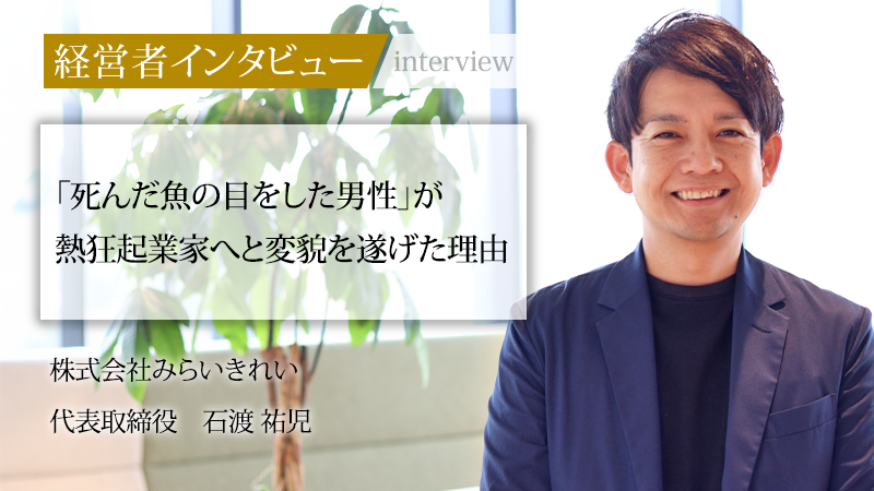 商品の背景にあるStoryを通じて顧客の心を動かす「Storyマーケティング」を強みに、クライアントの売上拡大を支援する株式会社みらいきれい。さらに、自社のマーケティングノウハウを活用し、一人ひとりの手の大きさに合わせて職人がつくるパーソナライズ箸ブランド「itten(イッテン)」も展開する。かつて「死んだ魚の目をしている」と評された青年は、いかにして逆境を乗り越え、熱狂を生む起業家へと変貌を遂げたのか。社員一人ひとりの夢を会社の原動力に変え、「日本一誠実・感動を追求し、みんなが熱狂する会社」を目指す代表取締役、石渡祐児氏に話を聞いた。