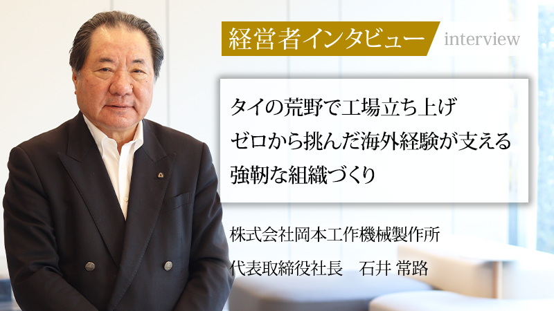 工作機械の一種である「研削盤」の分野で、世界トップクラスのシェアを誇る株式会社岡本工作機械製作所。同社は、日本、シンガポール、タイ、中国に生産拠点を構えるグローバルな一貫生産体制を強みとし、多種多様な製品を世界市場に供給している。また、工作機械で培った超精密加工技術を応用し、成長著しい半導体製造装置の分野でも事業を拡大中だ。今回は、通算30年近くにわたる海外勤務でゼロからの事業立ち上げを経験し、リーマン・ショック後の厳しい経営環境下で同社の再建を牽引した代表取締役社長の石井常路氏に、その軌跡と未来への展望をうかがった。