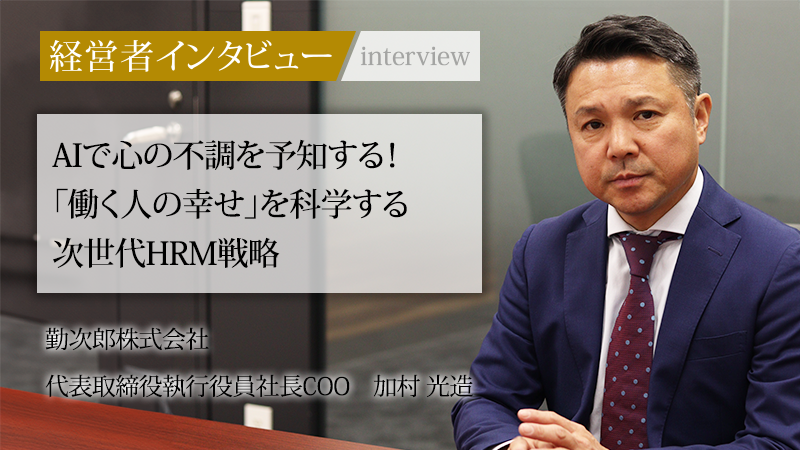 同社は就業・勤怠管理システム「勤次郎」をはじめとしたITサービスを提供しており、2021年には新製品の統合基幹システム「Universal 勤次郎」をリリースしている。勤怠管理の枠を超え、人事や従業員の心と体の健康といった、企業のHRMに関わるさまざまな課題を解決しようと奮闘する加村社長に、組織変革の裏側や独自の経営哲学、そして次世代のHRMにかける熱い思いを聞いた。