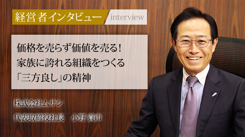 その価値観の根底にあるのは、創業時の社章に込められた「3M精神」です。これは「Minasama:お得意様」「Maker:協力メーカー」「Musashi:弊社社員」の3者が等しく幸せになるという指針です。私は40年前、この精神に共感して入社しました。社長となった今、改めてこの原点に立ち返り、社員の雇用を守り、一人ひとりが自己実現できる組織づくりに注力しています。