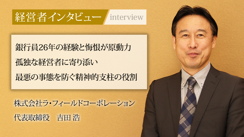中小企業に特化した財務コンサルティングを行う、株式会社ラ・フィールドコーポレーション。同社は単なる助言にとどまらず、資料作成から銀行交渉までを実働部隊として担う「外部財務部長」として、中小企業を強力にバックアップする存在だ。代表取締役の吉田浩氏は、26年間の銀行員生活を経て独立した。一社でも多くの企業を救いたいという熱い思いを胸に、札幌から全国へと支援の輪を広げている。今回は同氏に、起業の原点と中小企業再生にかける決意を聞いた。