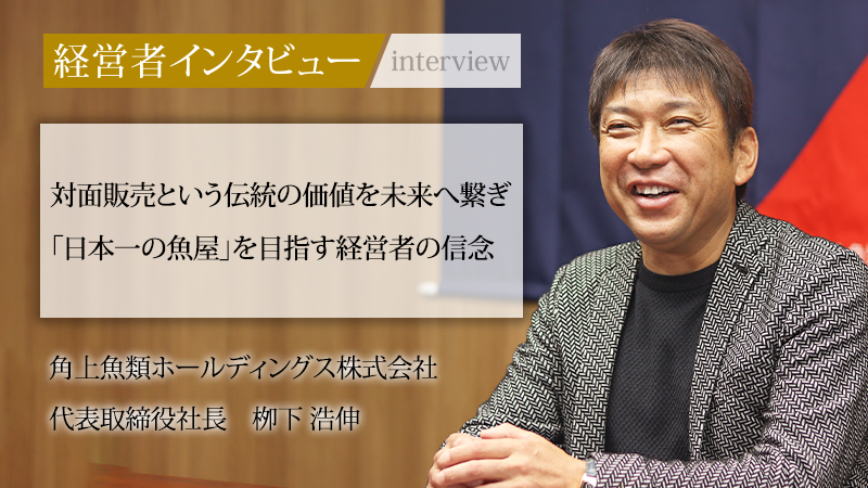 圧倒的な鮮度と活気あふれる対面販売で、日本一の魚屋を目指す角上魚類ホールディングス株式会社。その関東進出の礎を築いたのが、代表取締役社長の栁下浩伸氏だ。大学中退後、父の勧めで修業した築地での学びを胸に、関東直営1号店を店長として大成功に導いた。2011年の転機を経て経営の中枢へ入り、伝統である「人」の強みと対面販売の価値を守りつつ、100年企業を目指し新たな革新に挑む同氏に話を聞いた。