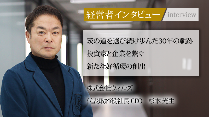 上場企業向けにIR支援や株主優待のDX化を手がけ、企業価値の最大化を追求する株式会社ウィルズ。機関投資家マーケティングツール「IR-navi」や、ポイント制の株主優待サービス「プレミアム優待倶楽部」といった、これまでになかった独自のサービスを展開し、業界内で確固たる地位を築いている。創業者の杉本光生氏は、サラリーマン時代に感じた業界の課題を自らの手で解決すべく、38歳で起業した。数々の障壁を乗り越え、前例のない挑戦を続けてきた杉本氏。これまでの歩みと、その先に描く日本の資本市場の未来像について話をうかがった。
