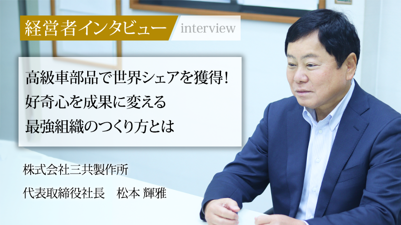 松本輝雅/1955年5月7日生まれ。1979年3月関西学院大学経済学部卒業。2015年3月大学院修了(技術・革新的経営博士)(同志社大学)。1979年3月株式会社三共製作所入社。1998年代表取締役に就任。社長就任頃から給湯器メーカーから脱却し、自動車・センサーなど他業界に進出した。