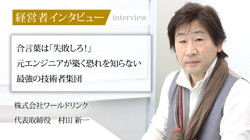物流システムの開発に特化し、大手企業から厚い信頼を寄せられる株式会社ワールドリンク。要件定義などの上流工程から実装までをワンストップで手掛け、営業部隊を持たずに案件が絶えない少数精鋭の技術者集団だ。同社を率いる代表取締役の村田新一氏が掲げる合言葉は、「失敗しろ」。最も恐れるべきは失敗ではなく「チャレンジしないこと」であるという信念のもと、「大きくいっぱい失敗してくれ」と社員を鼓舞し、独自の組織文化を築き上げてきた。かつて組織に馴染めず独立した過去を持つ村田氏が、いかにしてこの精鋭チームを作り上げたのか。エンジニアとしての原点から、2030年に向けた自社パッケージ開発への展望、そして社員への熱い思いを聞いた。