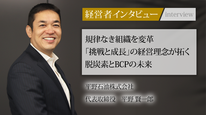 石油製品の販売から事業継続計画(BCP)のコンサルティングまで、エネルギーを軸に顧客の課題解決を支援する平野石油株式会社。三菱信託銀行でグローバルなキャリアを積んだ平野賢一郎氏は、2013年に家業である同社へ入社。ワンマン経営の影響が残る組織を、「失敗を恐れず挑戦する文化」へと導いてきた。「最大の強みは社員」と断言する同氏に、組織変革の軌跡と、「脱炭素」「BCP」を軸とした未来戦略について話を聞いた。