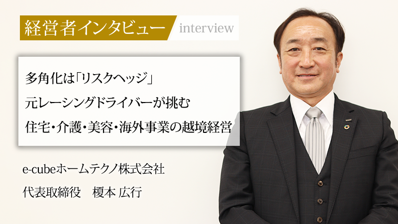 埼玉県川越市に本社を置き、LIXILの販売パートナー「マドリエ」として住宅資材販売を手がけるe-cubeホームテクノ株式会社。その実態は住宅資材販売に留まらず、介護、美容、海外事業と、柔軟に領域を広げる多角経営を実践している。指揮を執る代表取締役の榎本広行氏は、20代をプロのレーシングドライバーとして過ごした経歴を持つ人物だ。一見、無関係に見える事業展開の裏には、レーシングドライバー時代に培われた客観的な視点と、「単一事業への固執」への強い危機感に基づいた生存戦略があった。