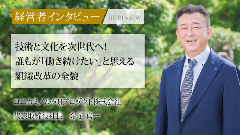 光学レンズで培った超精密技術を基盤に、産業用インクジェットヘッドの生産を手がけるコニカミノルタIJプロダクト株式会社。同社はコニカミノルタグループの一員として、高度なものづくりを支えている。代表取締役社長の金子真一氏は、過去の苦しい経験から、「何をするにも、すべては人」という確固たる信念を持つに至った。従業員一人ひとりが笑顔で前向きに働ける組織こそが、会社の未来をつくると語る同氏。その思いの原点と、未来を担う人財に向けたメッセージを聞いた。