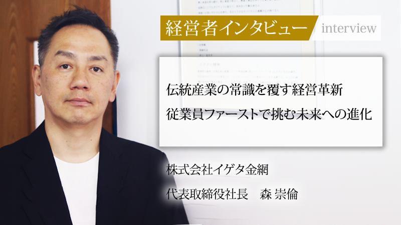 東大阪市に拠点を置き、溶接金網の製造を手がける株式会社イゲタ金網。コンクリートのひび割れ防止など、見えない場所で社会基盤を支える同社の製品には、徹底した品質へのこだわりが宿る。外資系人材サービス会社での経験を経て家業を継いだ代表取締役社長の森崇倫氏は、累積収支が赤字の状態からの脱却や外国人材の積極登用など、数々の改革を実行してきた。「従業員ファースト」を掲げ、製造業の未来を切り拓く同氏に、これまでの歩みと今後の展望を聞いた。