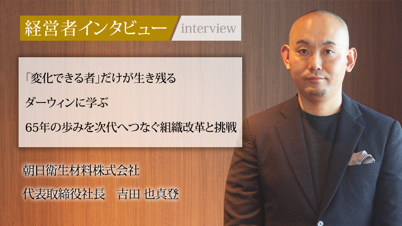 日本でいち早く使い捨て生理用品を製造し、かつてはテレビCMを放映するほどの隆盛を誇った朝日衛生材料株式会社。時代の急速な変化とともに、同社は柏原の新社屋移転を機に、「医療の総合商社」として現在は大阪・関西圏を中心に地域医療のインフラを支える存在となっている。かつては個人商店のような旧体制から、現代的にアップデートした企業組織へと抜本的に変革。現在は売上高50億円の達成、地域を代表する中堅企業への発展に挑む代表取締役社長の吉田也真登氏に、その改革の道のりと独自の生存戦略をうかがった。