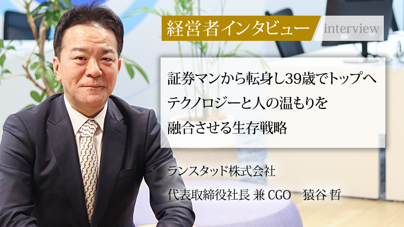 「人材サービスとは、雇用を創出し、素晴らしいマッチングを生み出せる非常に尊いビジネスです」。そう力強く語るのは、世界最大級の総合人材サービス企業、ランスタッド株式会社を率いる猿谷哲氏だ。2015年、39歳という若さで社長に就任。「現状維持は退化である」という強烈な信念を持ち、グローバル共通のシステム導入や、職種別組織への大胆な改変など、次々と改革を実行してきた。AIやテクノロジーが進化し、仕事の定義が揺らぐ現代において、同氏は「人が介在する価値」をいかにして最大化しようとしているのか。証券マンから転身し、失敗と成功を積み重ねてきたリーダーの、熱き信念と勝算に迫った。