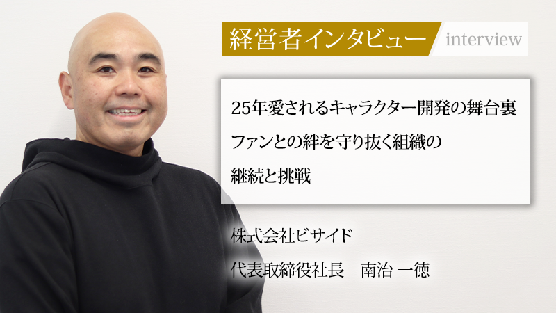 国民的キャラクター「トロ」が登場する「どこでもいっしょ」シリーズの開発会社として知られる株式会社ビサイド。同社はクリエイター発掘企画から同シリーズを生み出し、その後も多くのファンに愛されるタイトルを生み出してきた。現在は、これまでの受託開発で培った経験を基盤に、自社オリジナルタイトルのゲーム開発・制作にも力を注いでいる。代表取締役社長の南治一徳氏は、キャラクターとファンとの関係性を何よりも大切にしながら、新たな市場へと挑戦を続ける。一世を風靡したタイトルの誕生秘話から、自社オリジナルタイトルで世界を目指す現在の戦略、そして未来への展望まで、その情熱の源泉に迫る。