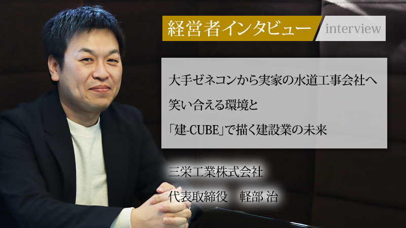 茨城県に生まれ、活発な少年時代を過ごした代表取締役の軽部治氏は、大学卒業後、大手ゼネコンの大林組へ入社し、過酷な現場で建設業のリアルを学んだ。その後、父親が創業した三栄工業株式会社へと籍を移した。当時は数名の水道工事会社だったが、同氏の牽引により、管工事から電気・建築工事まで幅広く手がける企業へと成長を遂げている。現在は、建設業界の深刻な人材不足とインフラ老朽化という課題に対し、教育プラットフォーム「建-CUBE」の立ち上げや海外連携などに挑戦中だ。新たな価値を創造し続ける同氏に、これまでの歩みと未来への展望をうかがった。