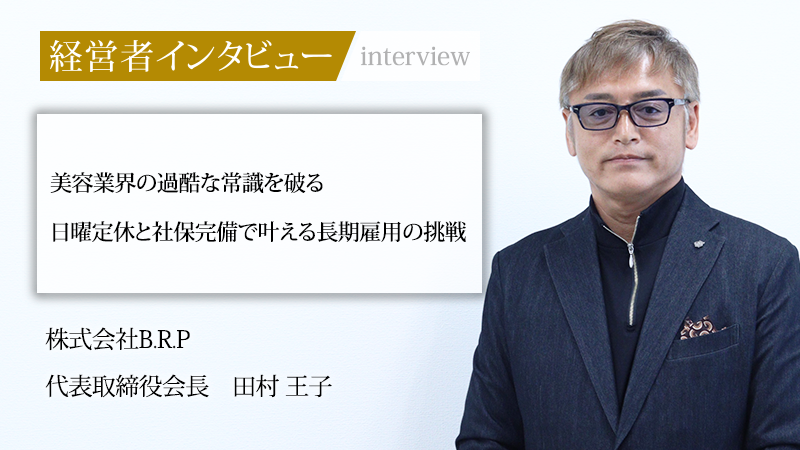 1970年創業の個人店「ビューティ・ローズ」を前身とし、現在は20店舗以上を展開する株式会社B.R.P(ビーアールピー)。同社は、美容業界につきまとう長時間労働や社会保険の未加入といった課題に切り込み、日曜定休や多様な働き方を実現してきました。高校在学中から美容の道を志し、トップクリエイターを経て経営の道へ進んだ代表取締役会長の田村王子氏。スタッフが長く働ける環境づくりへの情熱と母親への思い、次代を見据えた経営戦略について話をうかがった。