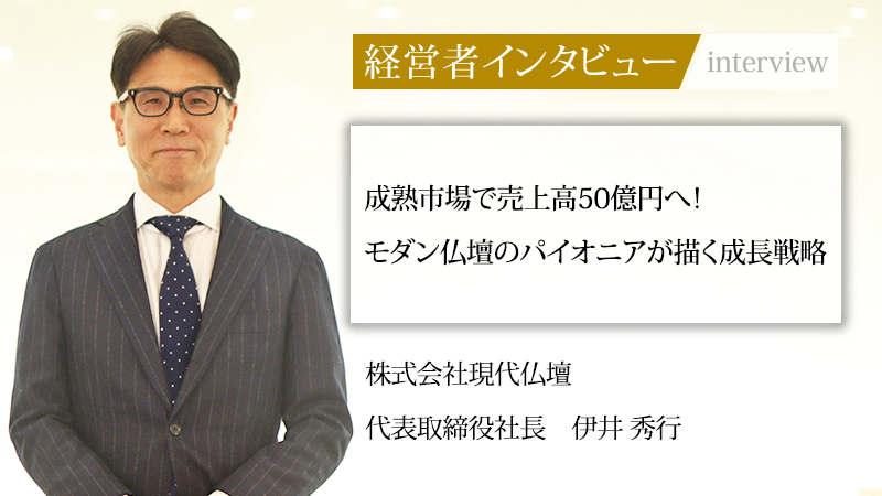 伊井秀行/1968年生まれ、千葉県出身。株式会社はせがわに入社し、営業部門と商品部門を経験。2024年10月株式会社現代仏壇に転籍し、代表取締役社長に就任。