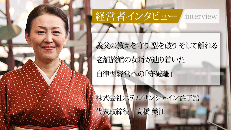 焼き物の里として知られる栃木県益子町。この地で創業以来、観光拠点として多くの旅人を迎えてきた「益子舘 里山リゾートホテル(株式会社ホテルサンシャイン益子舘)」。かつては団体旅行客で賑わった同館も、時代の変化とともに個人旅行、そして癒やしを求める空間へと変貌を遂げてきた。この変革の中心にいるのが、代表取締役であり女将の高橋美江氏だ。「お見合い結婚」で嫁いだ日から始まった義父との二人三脚、仕事と子育ての狭間で抱えた葛藤、そして経営者としての自立。伝統を守りながらも革新を恐れない高橋氏に、経営の信念である「守破離」の精神と、組織づくりへの思いをうかがった。