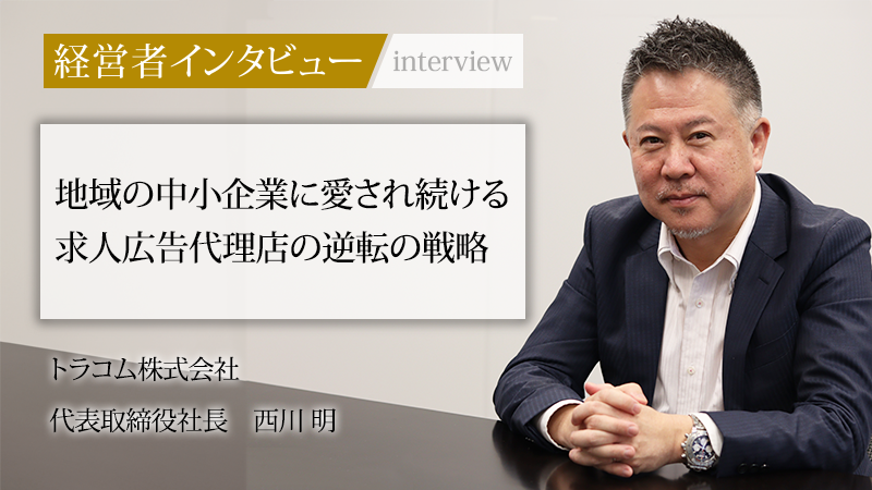企業の採用課題に対し、最適なソリューションを提供するトラコム株式会社。Airワーク 採用管理・Indeed・Indeed PLUSなどの求人広告事業を展開し、近年はDX支援やオウンドメディア運用など、事業領域を拡大し続けている。同社の強みは、斬新な提案よりも顧客一人ひとりと誠実に向き合う「人」の力にあるという。その企業文化を築き上げたのが、代表取締役社長の西川明氏だ。キャリアの節目で常に「誰のために働くか」を自問してきた同氏の選択の軸には、一貫した思いがあった。同社の強さの源泉、そして同社が掲げる「温かい雇用」を通じて社会に貢献しようとする情熱に迫る。