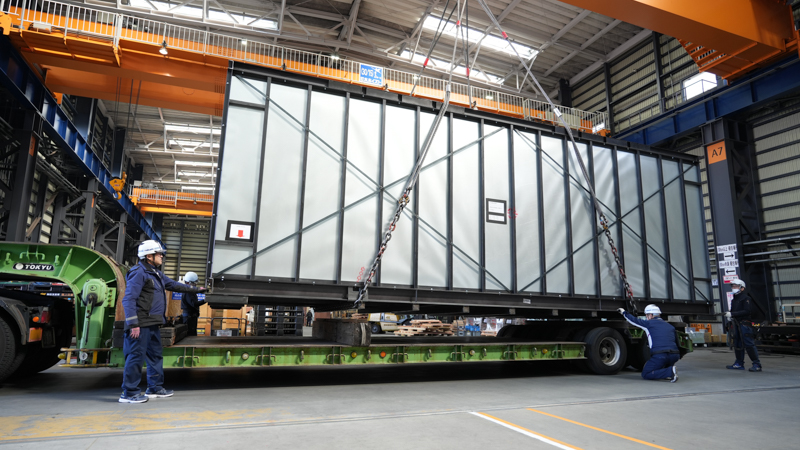 強みは大きく2点あります。第一に、梱包用容器の自社生産です。設計から製造までを自社で完結できるため、お客様の貨物に最適な箱を迅速に提供できる体制にあります。特に、国内のパイオニアとして導入した鉄箱は、木箱に比べて強度が高く、かつ容積を小さくできることから、輸送コスト削減や環境負荷低減というお客様の課題解決にも直結しており、弊社のSDGs・カーボンニュートラルへの取り組みの核となっています。自社製の容器を同業者に販売することもあり、競合他社がお客様になるというユニークな関係も築かれました。第二の強みは、最大60トンの重量物に対応可能な設備とそれを最大限に活用するノウハウを備えています。大型設備や精密機械の輸出などにおいて、「マブチなら何でも任せられる」と厚い信頼を寄せていただいています。
