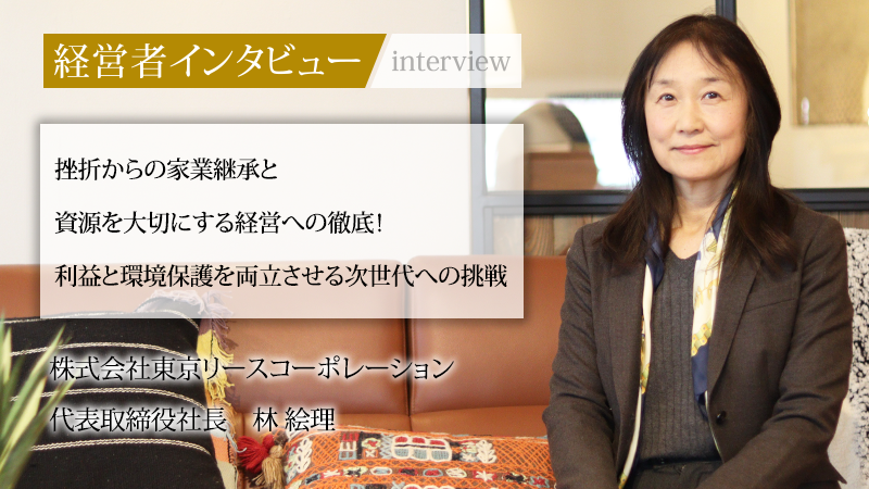 大使館の駐在員や来日したプロスポーツ選手などが居住する、マンションや一戸建て向けに高級家具のリースを手がける株式会社東京リースコーポレーション。代表取締役社長の林絵理氏は、かつて漫画家を志していたという異色の経歴を持つ。父親の強い意向で家業に強引に呼び戻され、倉庫の整理からキャリアをスタートさせた林氏は、バブル崩壊という苦境を乗り越え、今あるものをいかす堅実な経営を貫いてきた。いち早く電気トラックを導入し、サステナブルな社会の実現に向けた取り組みを推進する同氏に、これまでの歩みと次世代への思いをうかがった。
