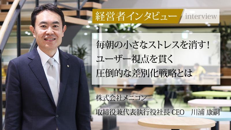 川浦康嗣/1969年愛知県名古屋市生まれ。1992年早稲田大学法学部を卒業後、同年株式会社メニコンへ入社。経営企画室などを経て、2006年よりメニコンシンガポール副社長、2010年には同社社長に就任。その後、マーケティング、開発、生産、サプライチェーン部門の執行役としてグローバルに幅広い職務を経験。2023年4月に代表執行役社長 COOに就任し、2025年4月より代表執行役社長 CEOを務める。