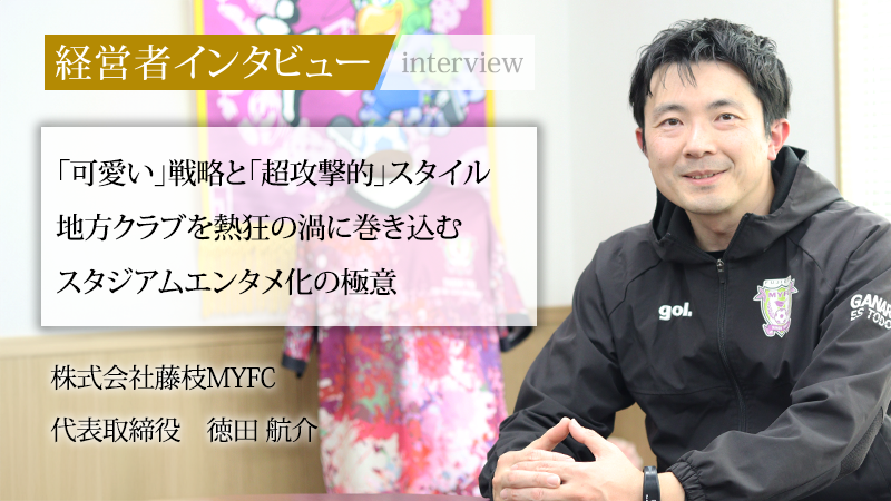 明治安田Jリーグ百年構想リーグおよび2026/27シーズン、元日本代表の槙野智章氏を監督に招へいし、Jリーグ全体に大きな話題を振りまいている株式会社藤枝MYFC。同クラブは「超攻撃的なサッカー」を掲げ、地方クラブながら異彩を放っているが、同社を率いるのは実はサッカー未経験の経営者だ。代表取締役の徳田航介氏は、学生時代を剣道一筋で過ごし、測量会社や検査会社での勤務を経てクラブ経営に携わることになったという異色の経歴を持つ。サッカー界の常識にとらわれない数値に基づいた組織改革と、スタジアムを熱狂の渦に巻き込むエンターテインメント戦略。この2つの軸で推進する徳田氏独自の経営手腕と、これからの展望について話をうかがった。
