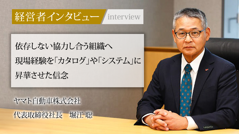 自動車部品や機械工具の卸売業として、全国の自動車整備を陰ながら支えるヤマト自動車株式会社。代表取締役社長の堀江聡氏は、学生時代に2級自動車整備士資格を取得し、卒業後は同社一筋で歩んできた。当初は営業職を敬遠していたが、その営業現場での経験から卸売業の本質を学び、企画部の立ち上げや全社的な業務改善を牽引してきた。現在も「着実に、堅実に」を信条とし、自社で編集したオリジナルのカタログや業販システムを展開し業界に貢献する堀江氏に、これまでの歩みと組織の未来像をうかがった。