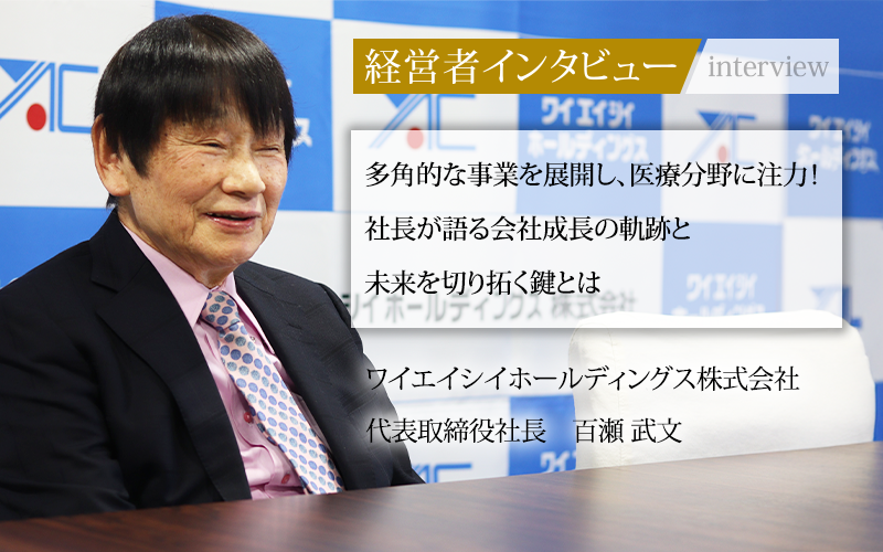 創業から50年、包装機の製造に始まり、現在は「半導体」「医療」「環境・社会インフラ」など、3つの事業領域に拡大し、成長を続けてきたワイエイシイホールディングス株式会社。経済危機を乗り越え、ホールディングス化という新たな挑戦を実現させた同社の歴史は、まさに革新の連続だった。今回は、代表取締役社長の百瀬武文氏に、創業の経緯や現在注力する分野での取り組み、そして未来への展望についてお話をうかがった。